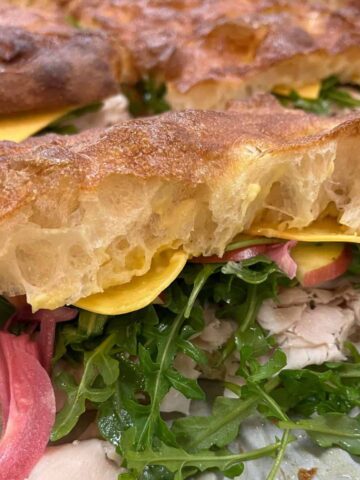 This focaccia doesn’t have the big air pockets, chew, and fermented flavor of the sandwich focaccia, which benefits from a slow, cold fermentation, but it’s super easy, quick and satisfyingly soft.
